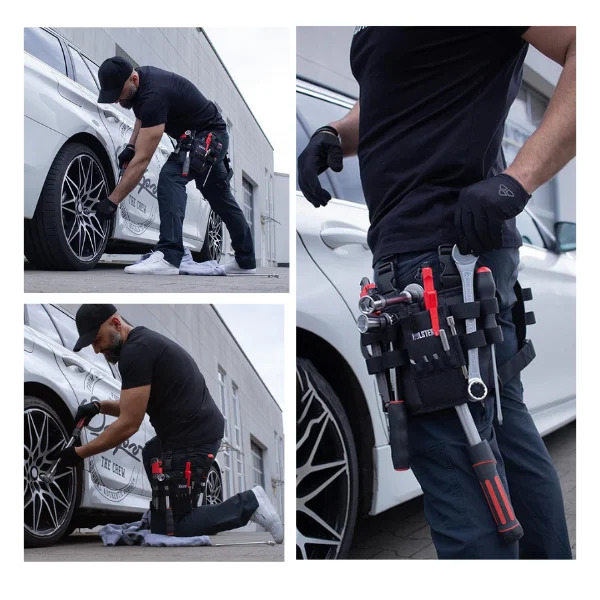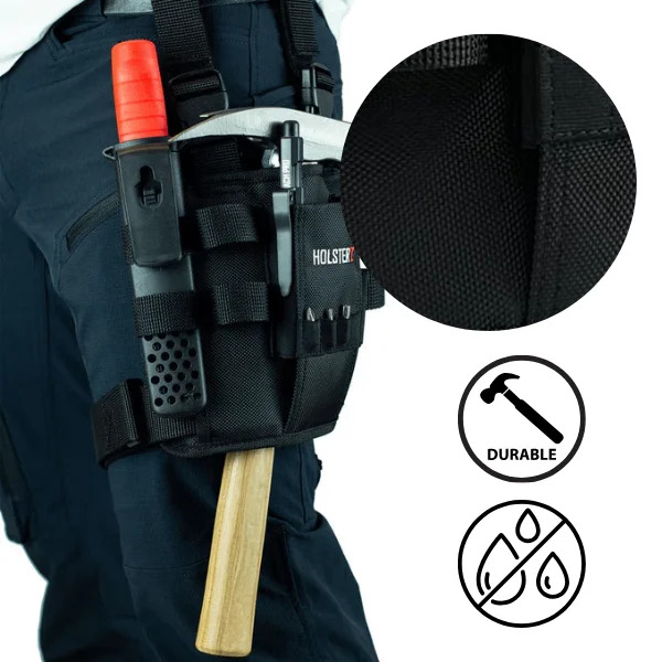 Este cinturón de herramientas está fabricado con material impermeable, protegiendo tus herramientas y garantizando un rendimiento duradero en cualquier entorno.