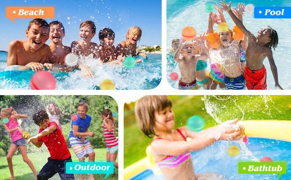 Independientemente de la edad, nuestros globos de agua reutilizables son un método emocionante y divertido para combatir el calor durante los calurosos días de verano. Ofrecen infinitas posibilidades para participar en una amplia gama de juegos y actividades, como lanzamientos de globos de agua, carreras de relevos y peleas de agua en la piscina.